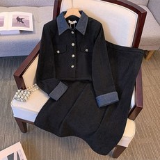 슬림소녀 여성 가을 겨울 원피스 고급스러운 기모 도톰 코트 상의 배색 디자인 스커트 뒤트임 투피스 세트