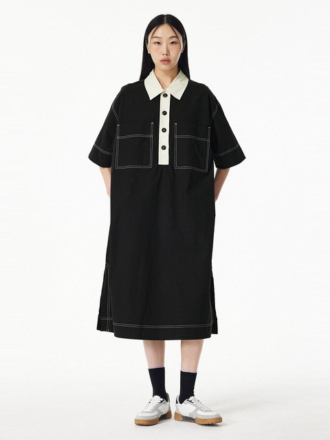 [스튜디오 톰보이] 배색 카라넥 반팔 원피스_다크 네이비 9176241983