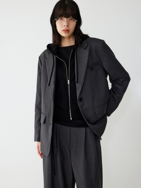 [스튜디오 톰보이] 반더블 입술포켓 스트라이프 셋업 자켓_그레이 9105312504