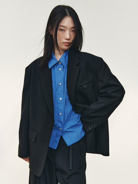 [스튜디오 톰보이] 오버핏 숄더 투버튼 싱글자켓_블랙 9105312101