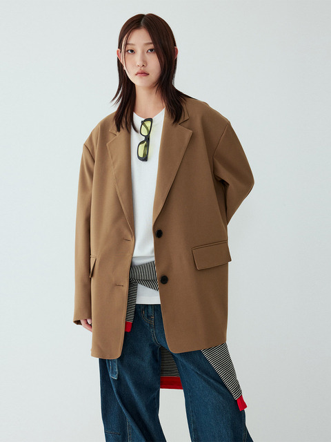 [스튜디오 톰보이] 오버핏 숄더 투버튼 싱글자켓_카키 베이지 9105312101