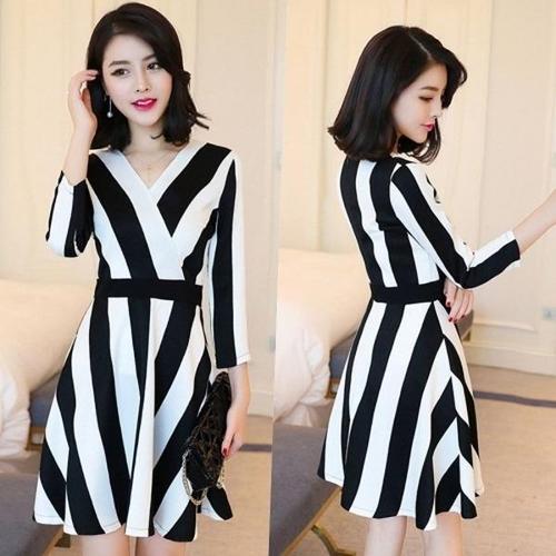 [신상오픈런]여성 사이드 트위스트 스트라이프 랩 원피스