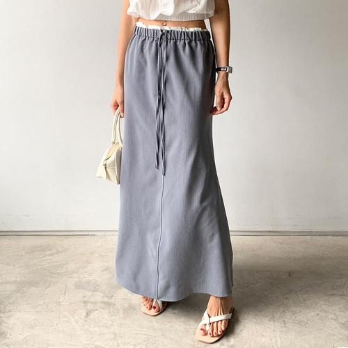 [샵앤][샵앤] 국산 프릴 밴딩 스트라이프 인어 롱스커트 STJ-WSK-4866-그레이