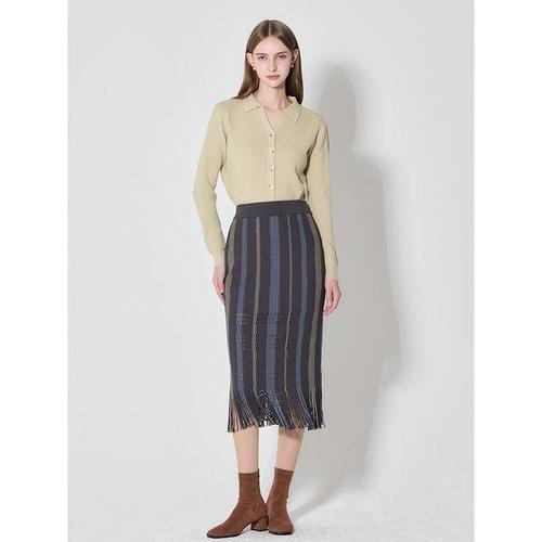 [보니스팍스]스트라이프 프린지 니트 스커트 (택가격: 419000원)