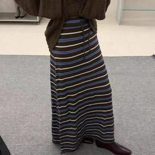 탐리프 여성 캐쥬얼 루즈핏 뒷트임 스트라이프 밴딩 니트 롱 스커트