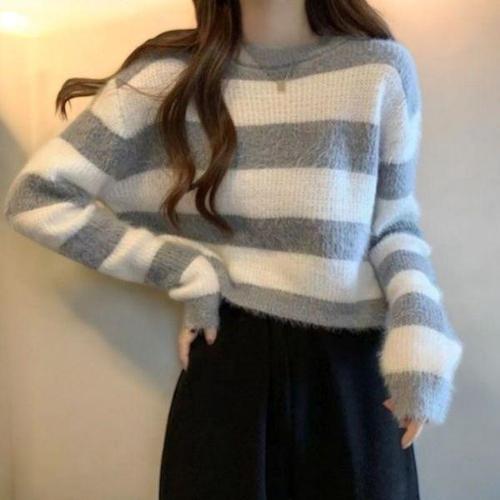 [에이치플러스몰]스트라이프 여성겨울니트니 좋은 기모크롭티 스타