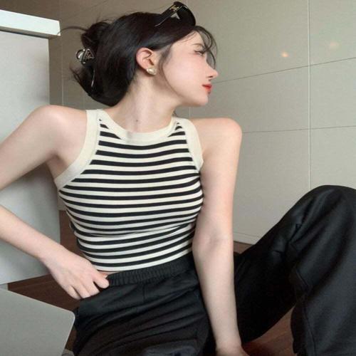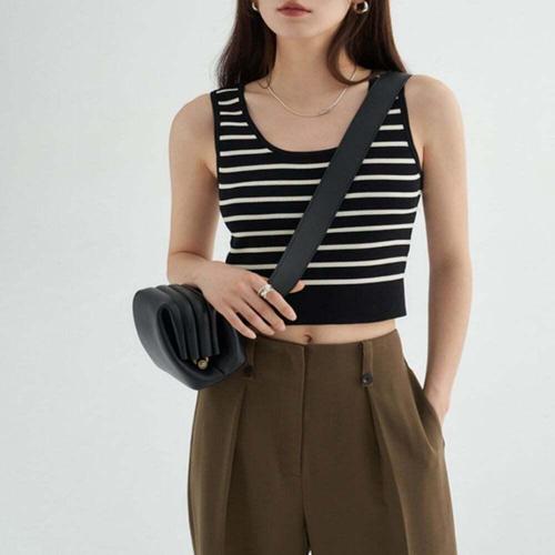 [셀럽하우스]여성 CHQJ5659 블랙 니트민소매 스트라이프 크롭 니트 나시티