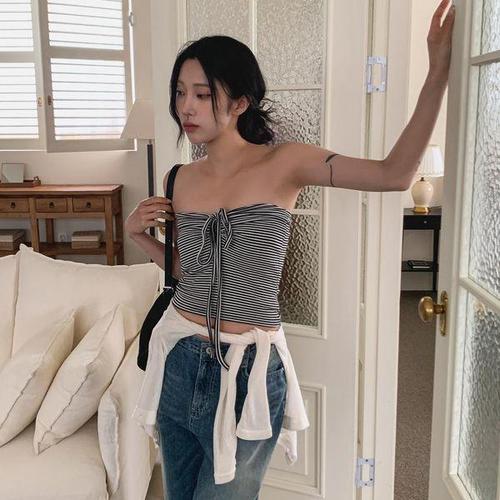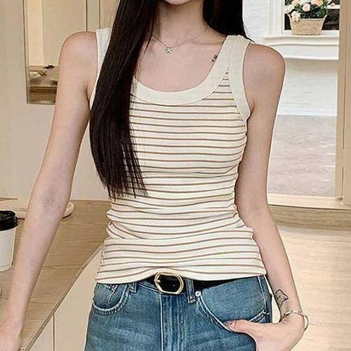 [오노마] ONM 여성 스트라이프 크롭 스퀘어넥 민소매 나시티 여름