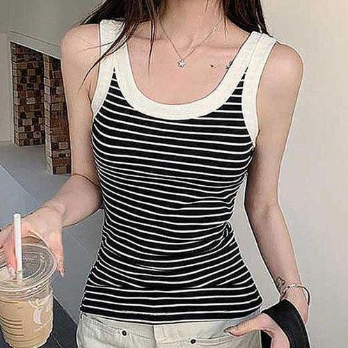 [셀러허브_여성트랜드패션]ONM 여자 스트라이프 배색 나시티 여름 티셔츠