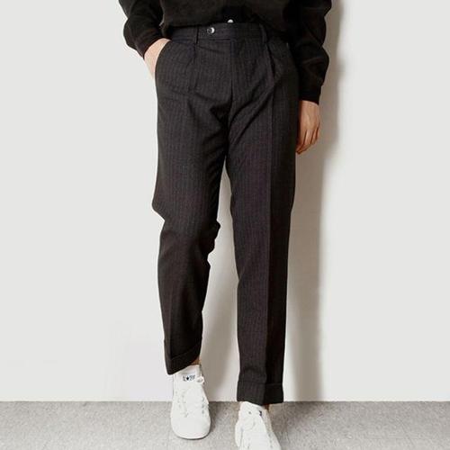 [블랙앤화이트] 남성 세로 스트라이프 체크 바지 5053GXWR_DARK GREY