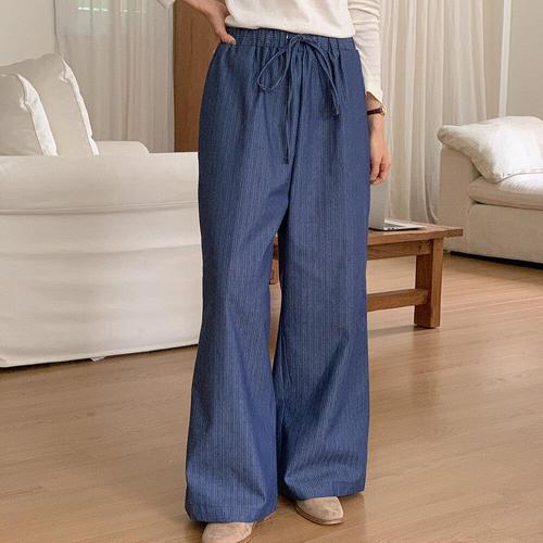 [신상오픈런]여성 스트라이프 리본 밴딩 맥시 와이드 진