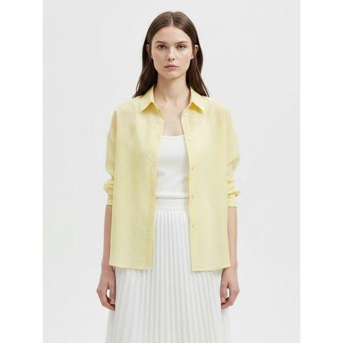 [샵앤]여성 카라넥 잔줄무늬 봄나들이 셔츠 블라우스 NARU-WBL-21046-옐로우