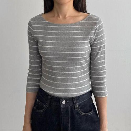 페이퍼먼츠 여성용 스트라이프 7부 소매 티셔츠 01844