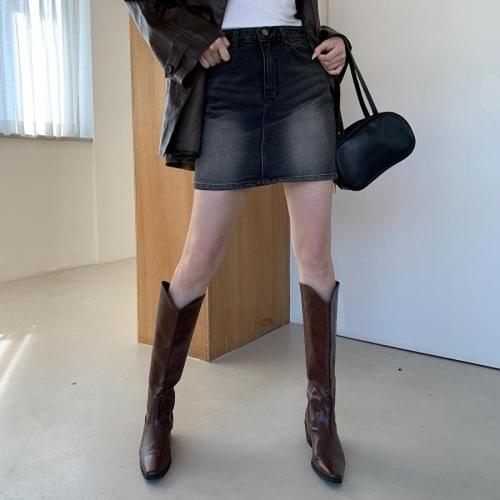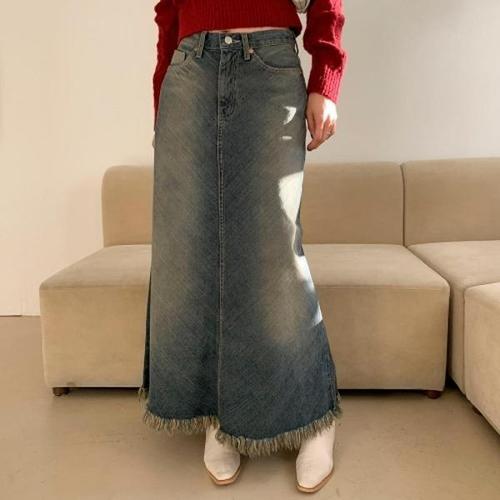 [신상오픈런]|KHK89E|론네미 레트로 스트릿룩 워시드 긴 윈터 청 여성 치마_18164390_597559