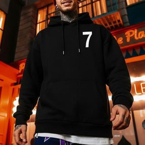 남성 오버핏 블랙 후드티 숫자포인트 스트릿 힙합 데일리룩 WFL8Z5C