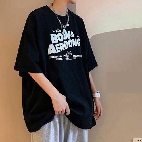감성 프린팅 남자 오버핏 블랙 반팔티 스트릿룩