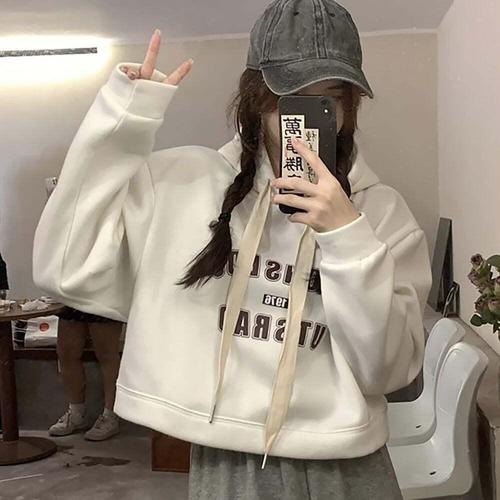 [셀럽하우스]크롭 UYKP0327 후드티셔츠 여성 루즈핏 레터링 스트릿룩 디자인