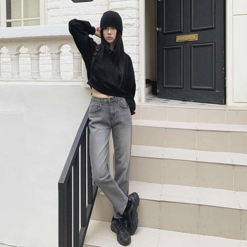 [다잇템]여성 스트릿룩 워싱 그레이 진 일자핏 팬츠