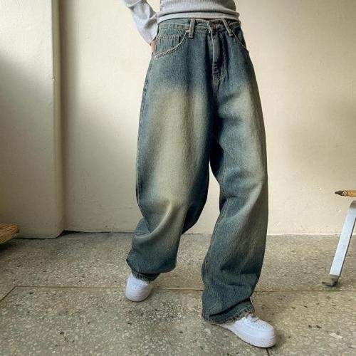 [에이치플러스몰]남성 스트릿 와이드핏 생지 데님 청바지 캐주얼룩