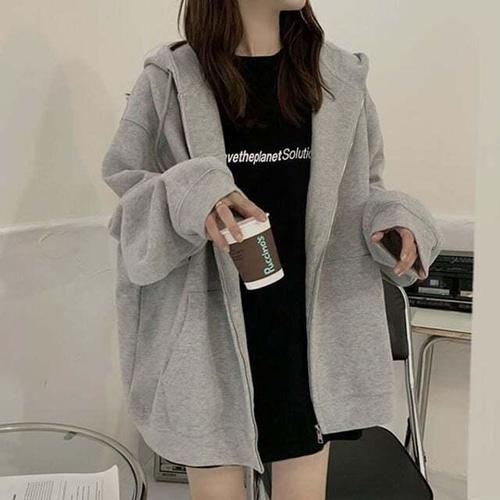 [셀럽하우스]무채색 HKJX5588 오버핏 여성 무지 후드집업 후드데님자켓