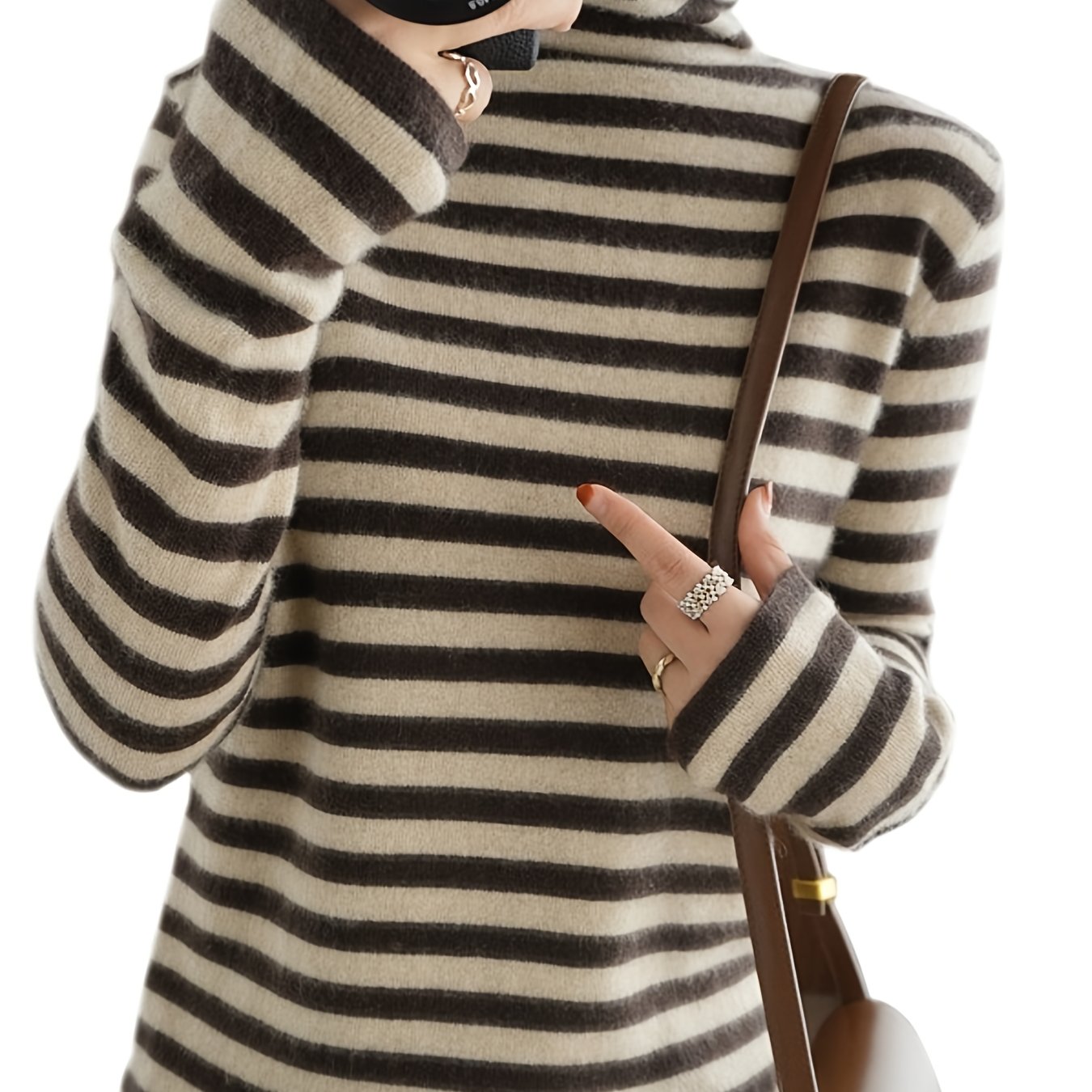 TEMU 여성용 우아한 하프 터틀넥 스웨터 - 멀티 컬러 (브라운/그린/베이지/토프) 두꺼운 겨울 풀오버, 긴 소매 레이어드 스타일 탑, 세탁기 사용 가능한 가을 & 겨울 땀 감소 스웨터 & 캐주얼 의상