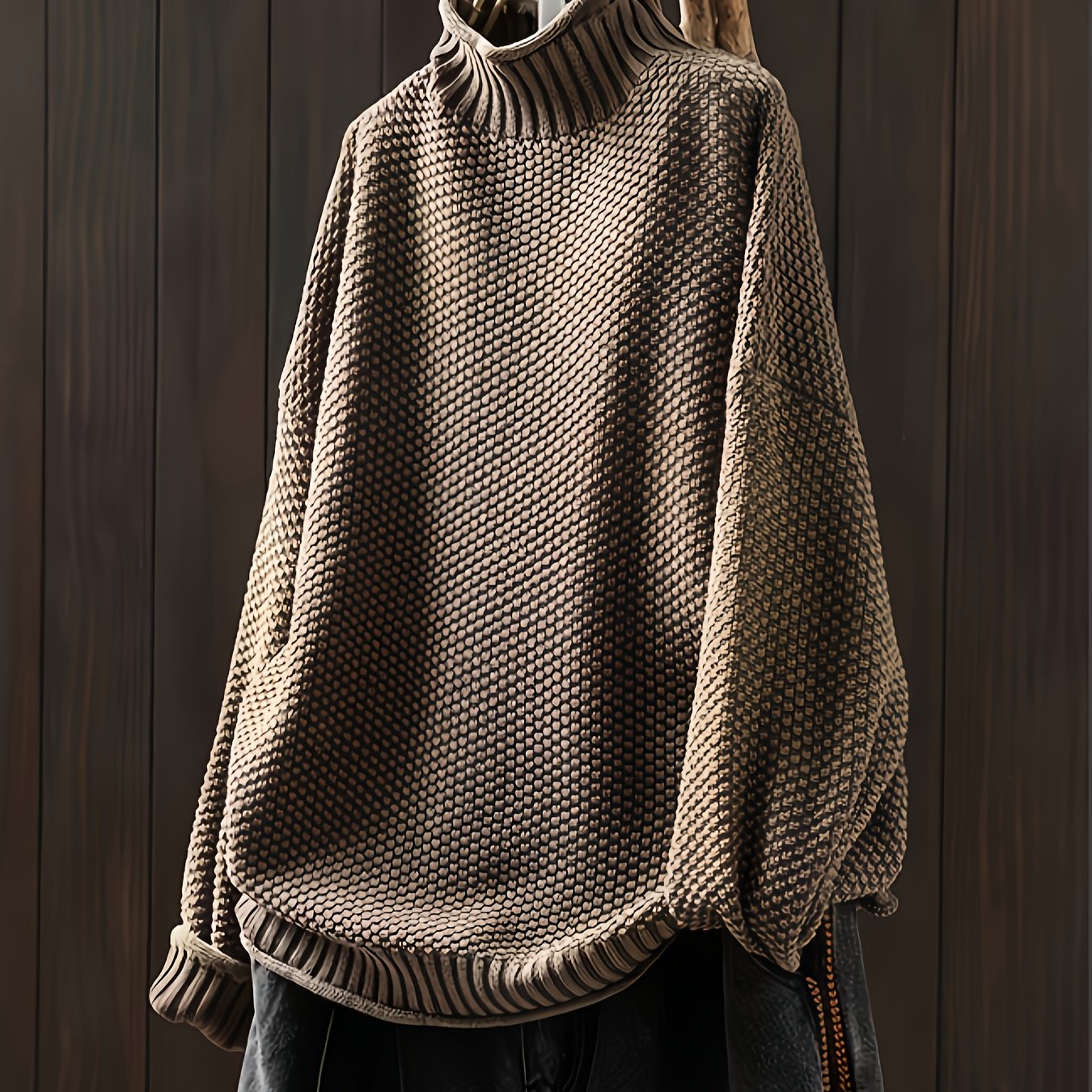 TEMU [일상적인 편안함] 여성용 하이넥 케이블 스웨터 - 캐주얼 시크, 긴 소매, 단색, 봄/가을 패션, 브라운, 40g/m², 기계 세척 가능, 하이넥 스웨트