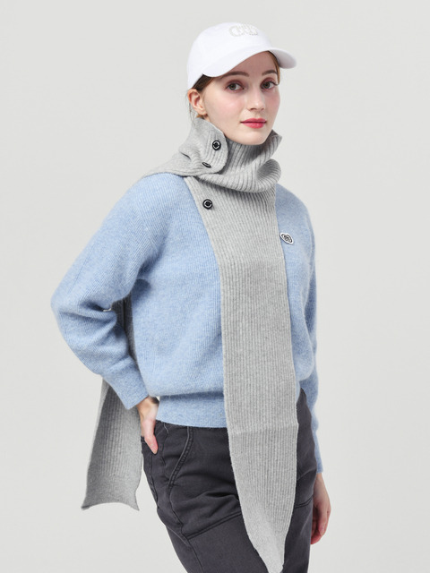 [두유노우엠씨] 24FW 단추 오프닝 넥 워머그레이 니트 머플러