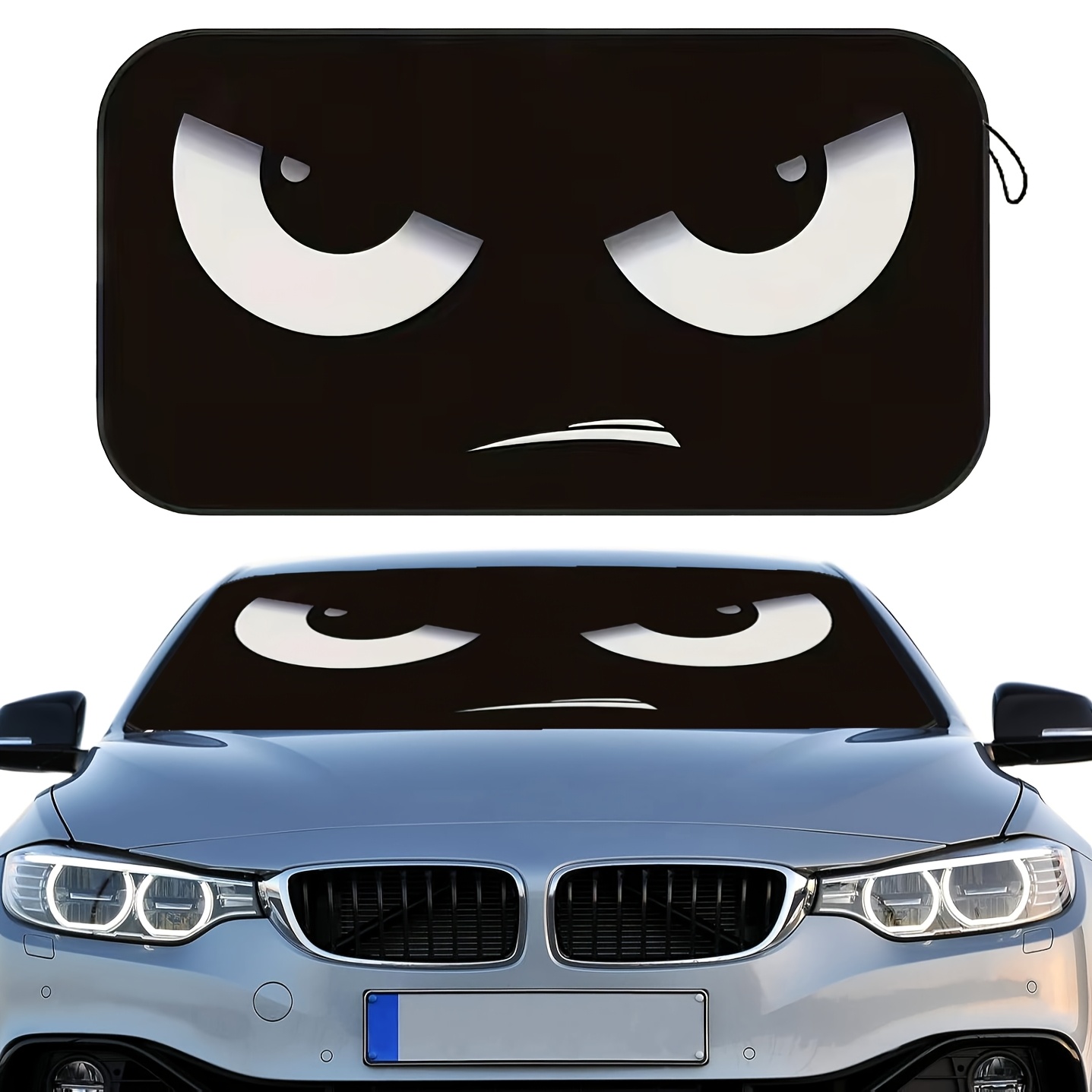 TEMU 자동차 앞유리 차양, 만화 블랙 아이즈 자동차 선바이저, 폴리에스터 섬유 소재로 제작, 열 절연 및 프라이버시 보호 기능 포함, 자외선 차단 가능한 접이식으로 차량을 시원하게 유지, 다양한 모델에 적합, 간편한 보관을 위한 접이식