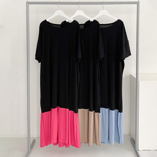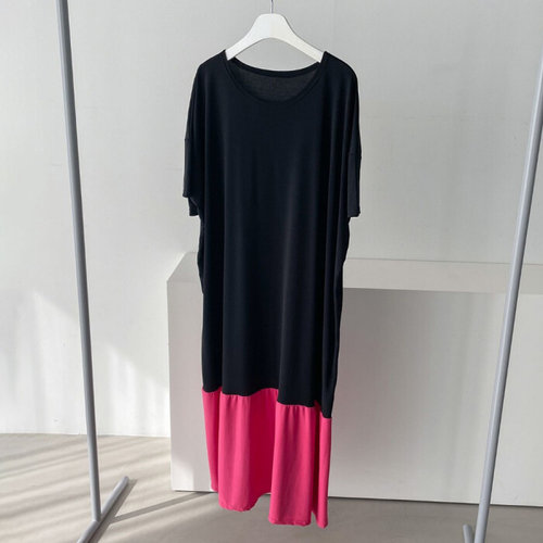 나야홍 / 빅사이즈배색원피스 L067L506 스판배색반팔롱원피스 G