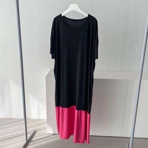 [엄지척]여성 빅사이즈 컬러배색스판롱원피스 GLL067M306_19871671_667501