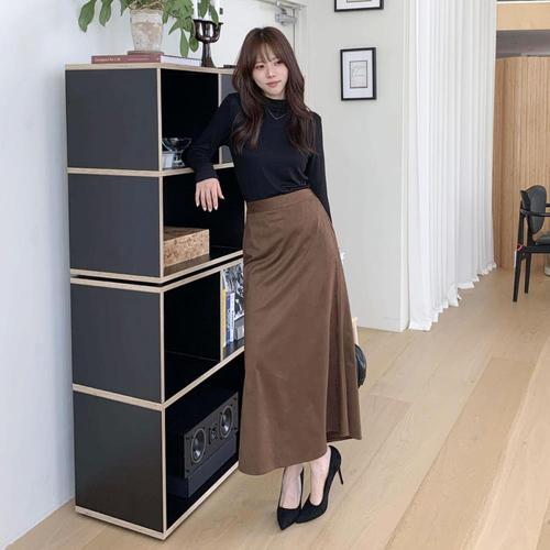 [옷자락] 여자 심플 스웨이드 스판 세무 a라인 롱 스커트