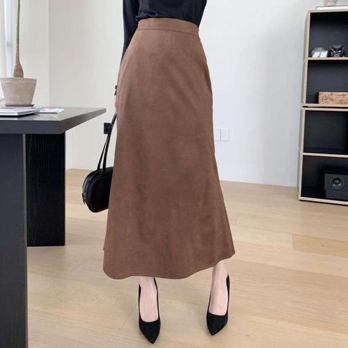 [신상오픈런]여성 심플 스웨이드 스판 A라인 롱 스커트