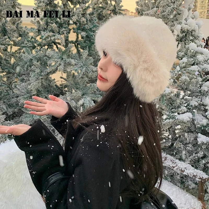 여성용 따뜻한 두꺼운 인조 모피 모자, 겨울 모자, 푹신한 모피, 두꺼운 따뜻한 푹신한 버킷 모자