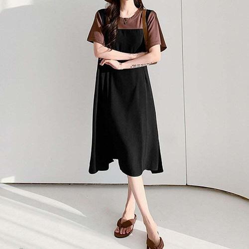 [셀럽하우스]반팔 OQLH5350 멜빵스타일 데일리 여자 원필스 여름 롱원피스