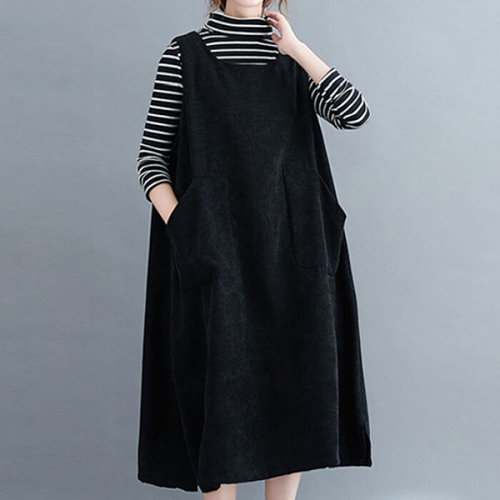 나바바 / NO959 여성 코듀로이 포켓 멜빵 원피스