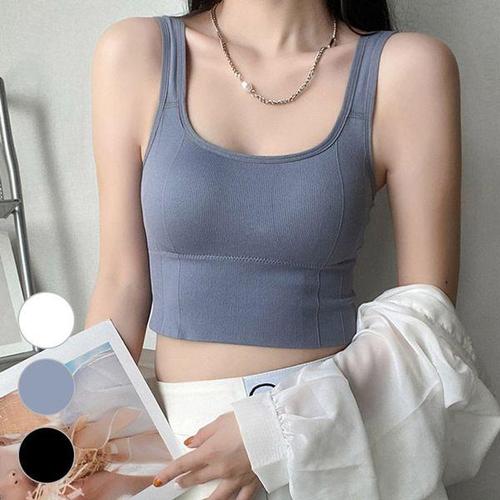 [에이치플러스몰]크롭티 민소매 스포츠브라 스퀘어넥 캡내장 브라탑