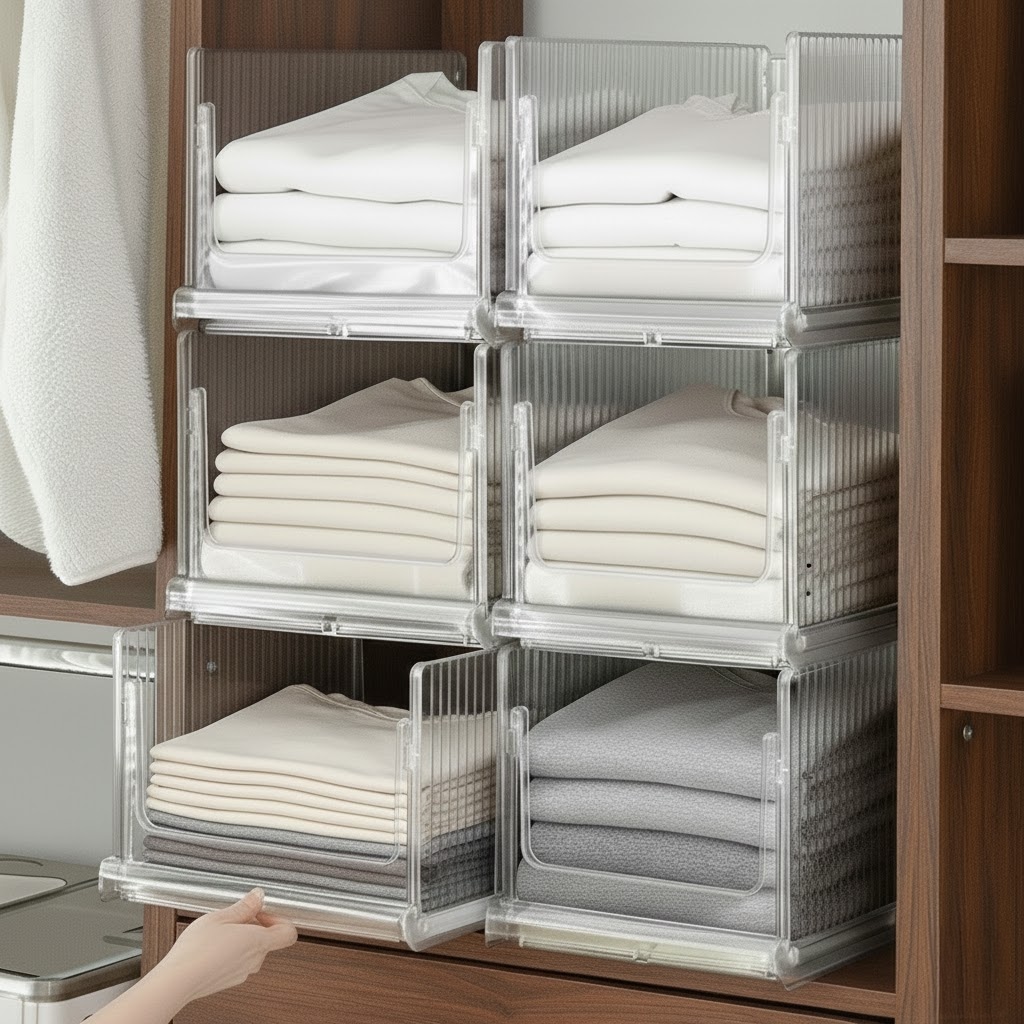 슬라이딩 아크릴 접이식 옷 정리함 투명 적층식 리빙박스 팬트리 폴딩 수납 트레이 2size