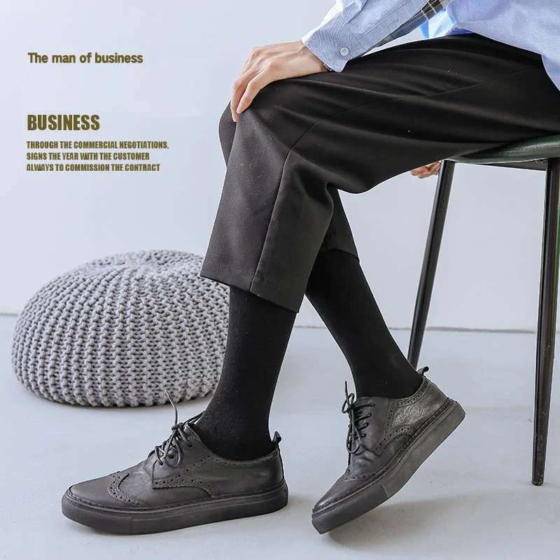 남성 긴 양말 무릎 높은 코튼 솔리드 비즈니스 부드러운 탄성 파티 드레스 정장 신사 스타킹 사계절 Sokken 브랜드