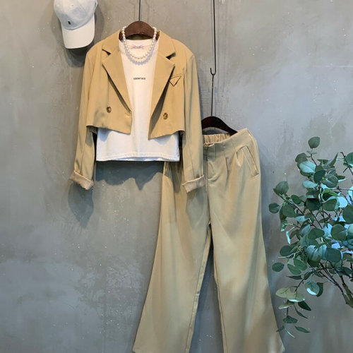 [쉬즈미스]2SET 피크드 싱글 재킷+베이직 크롭 슬랙스 2종세트 (택가격:506000원)