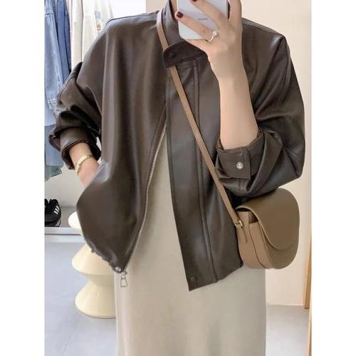 [드레스허그] 슬론 브라운 레트로 가죽 자켓_240901_HN028