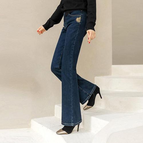 [스타일온미][스타일온미] 블리트 골드 스티치 하트 자수 포인트 속기모 슬림 부츠컷 데님 팬츠
