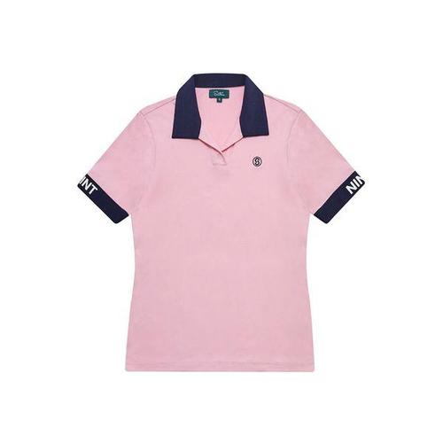 [세인트나인]여성 슬림핏 모크카라 반팔 티셔츠 PINK
