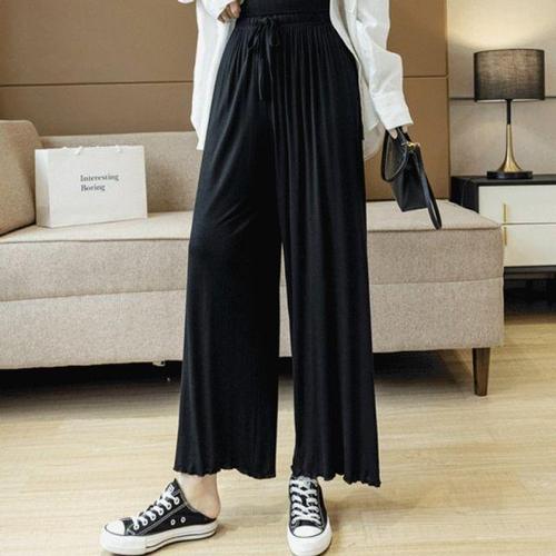 여성 봄 여름 하이웨이스트 타이트핏 플레어 팬츠, 슬림한 다리 롱 블랙 팬츠, 슬림한 여성을 위한 얇은 와이드 팬츠