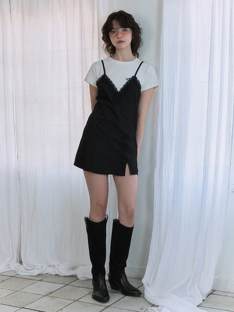 [그린버터] Silky Lace Slip Mini Dress (Black)