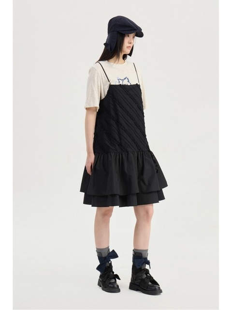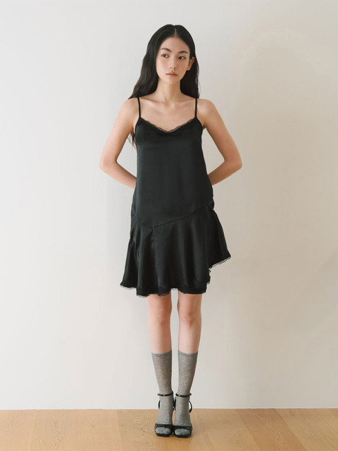 [럭키슈에뜨] Diagonal Line Ruffle Mini Slip Dress (black) LFDAM26320BKX