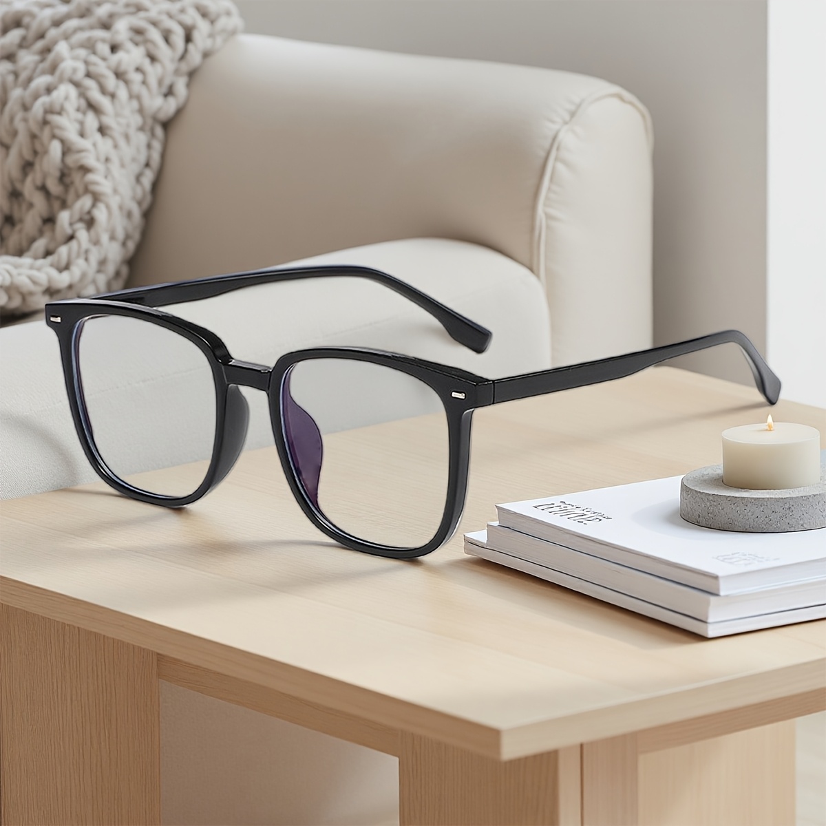 TEMU 스퀘어 대형 프레임 투명 렌즈 안경 한 쌍 | 프레피 스타일, 풀 림, PC 프레임 및 렌즈, 비즈니스 출퇴근 및 신학기 시즌에 이상적, 배터리 없음