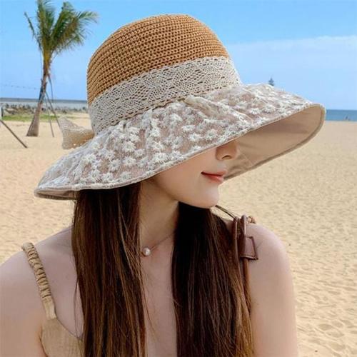 [룽스]레이스 챙 리본 짜임 모자 면 여름 벙거지