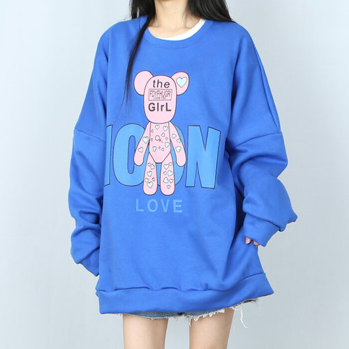 파라노말샵 / (시밀러룩) 아이언 베어 오버핏 기모 맨투맨 빅사이즈