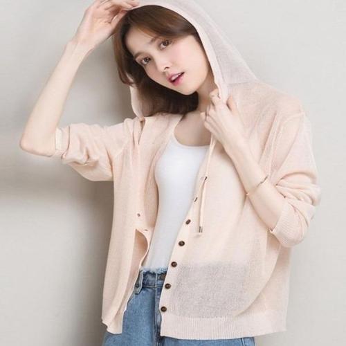 [엄지척]여성 얇은 시스루 후드 달린 단추 니트 가디건 간절기_19806398_667501