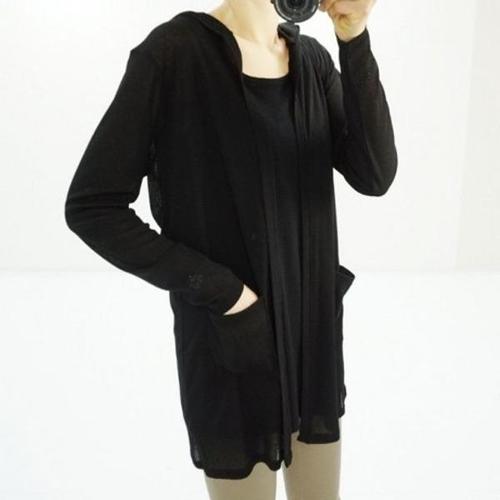 샵앤) 여성 시스루 후드 집업 쿨링 긴팔 가디건 EGG-WCD-20657-블랙